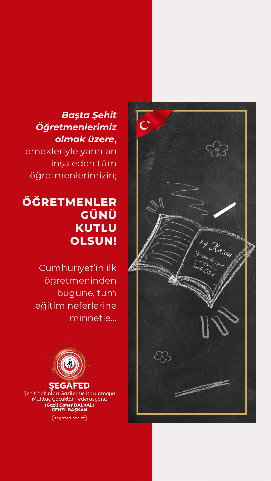 Başta Şehit Öğretmenlerimiz olmak üzere, emekleriyle yarınları inşa eden tüm öğretmenlerimizin; ÖĞRETMENLER GÜNÜ KUTLU OLSUN.
