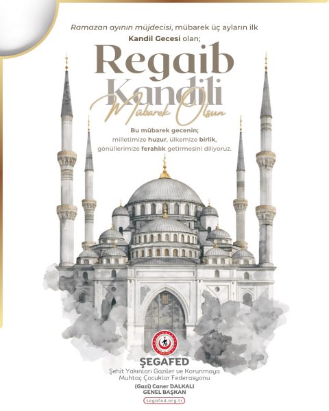 Ramazan ayının müjdecisi, mübarek üç ayların ilk Kandil Gecesi olan; REGAİB KANDİLİ’MİZ MÜBAREK OLSUN.